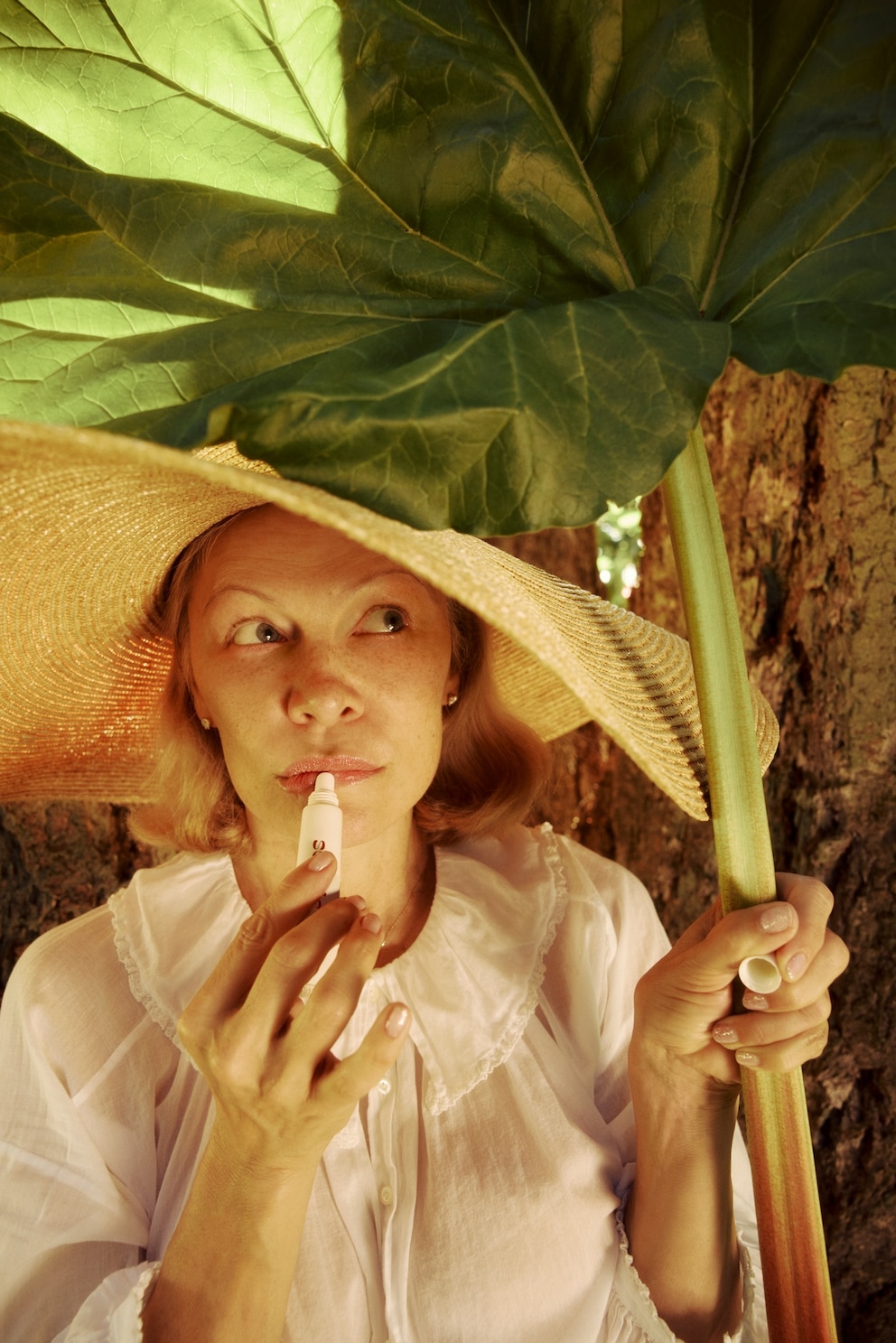 “For example, our Basic Balm in Sugar-Dipped Rhubarb was born from a childhood story of mine that I had with my grandmother,” she says. “Ripping off stalks of rhubarb in the garden and eating it right there.”